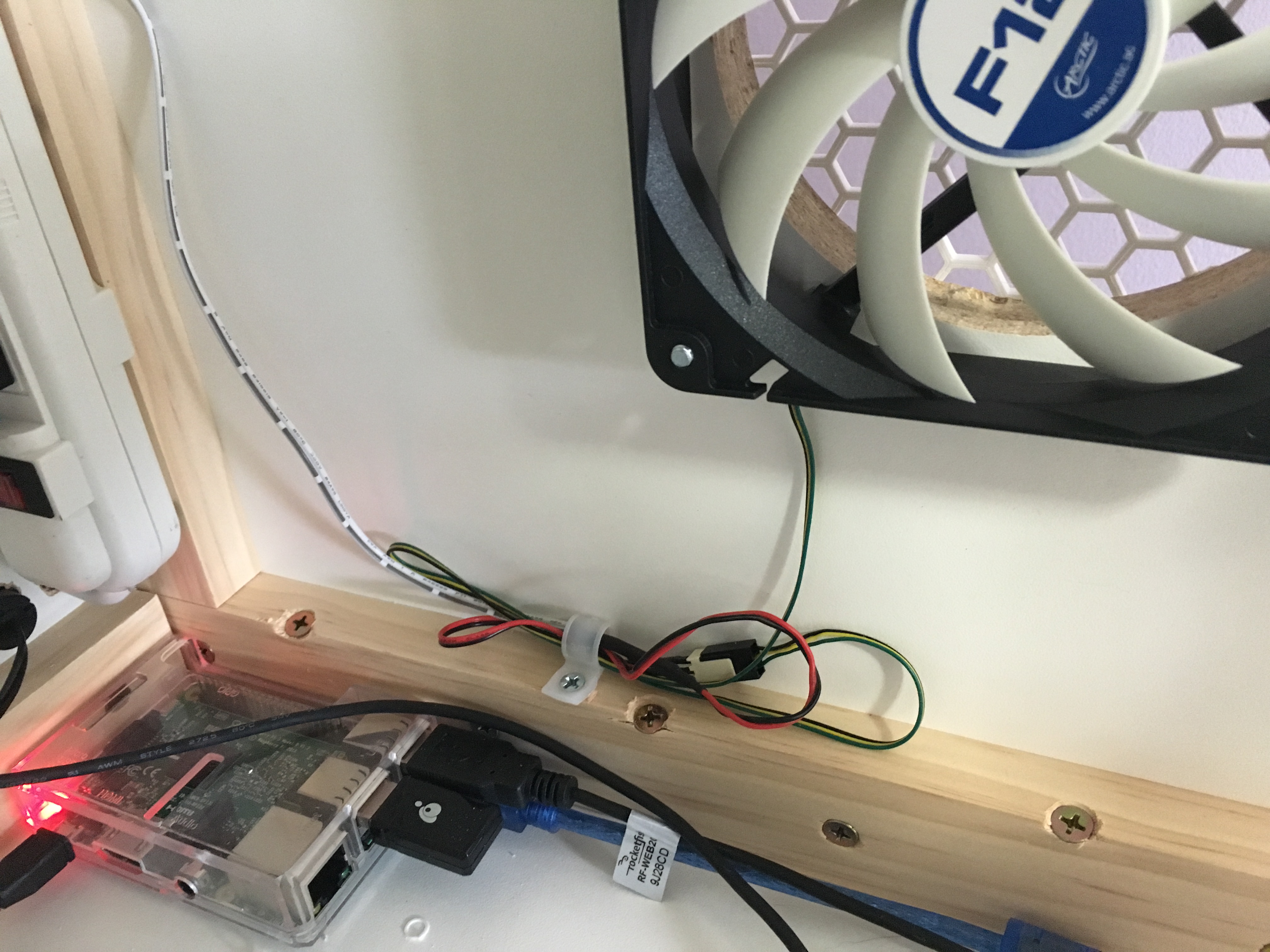 The LED light strips run off a 12v transformer. I cut an extension and soldered on a fan connector for the 120mm fan.