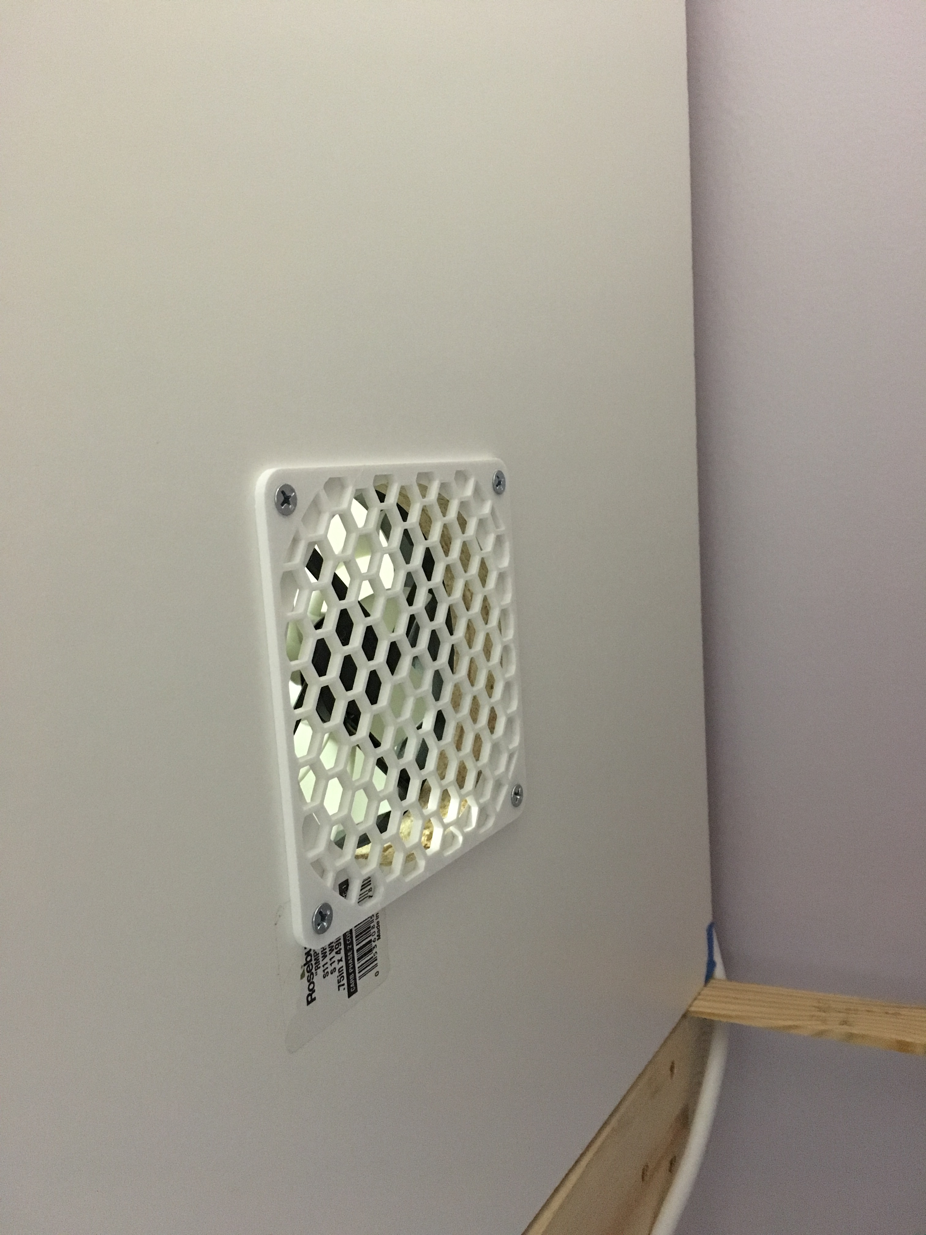 Have a single 120mm fan for ventilation, 3d printed fan grills from thingiverse, and printed an aperture door to restrict airflow when retaining heat.