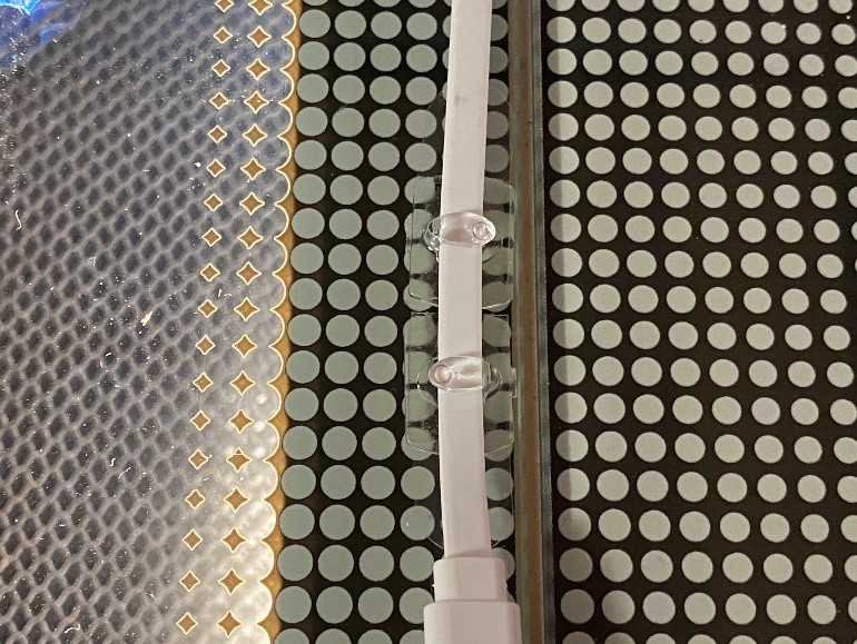 Use the Command Decorating Clips in pairs, one facing the center of the machine, one facing the outside of the machine