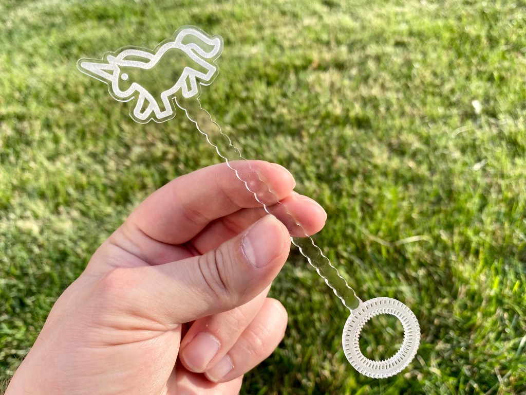 Laser engrave/cut bubble wand. Free Download in Adobe Illustrator AI, SVG, and PDF formats. Designed in Fusion360, post processed in Adobe Illustrator.