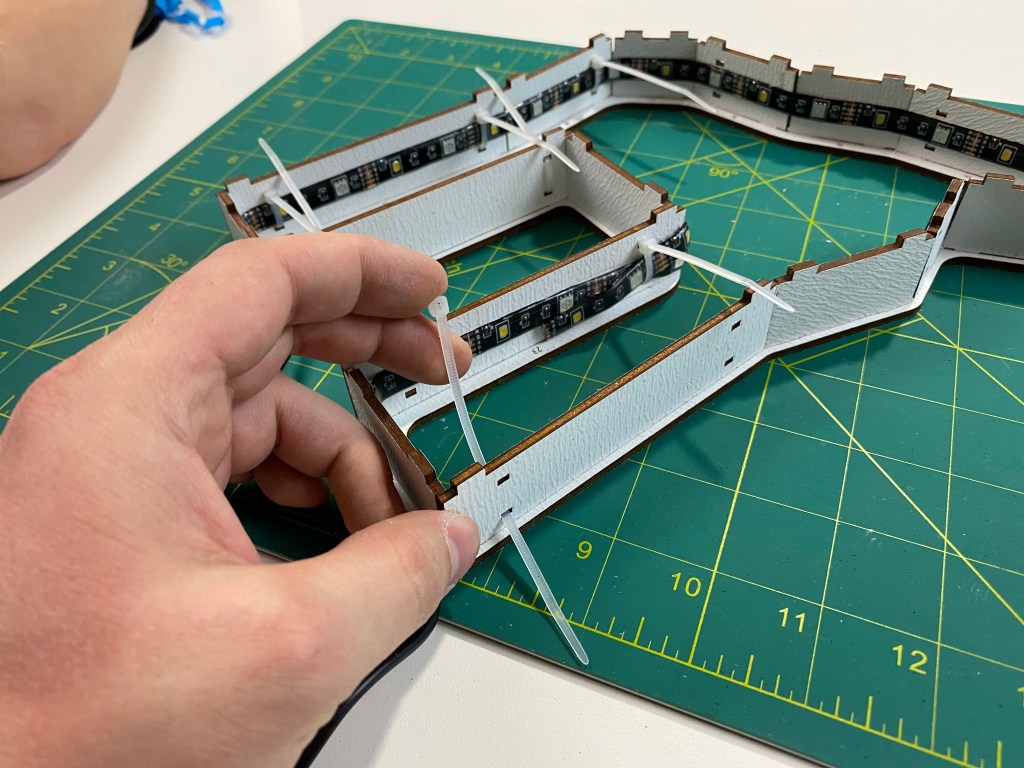 - Insert zip ties so the locking mechanism is closest to finished front so you don’t see them in the finished light