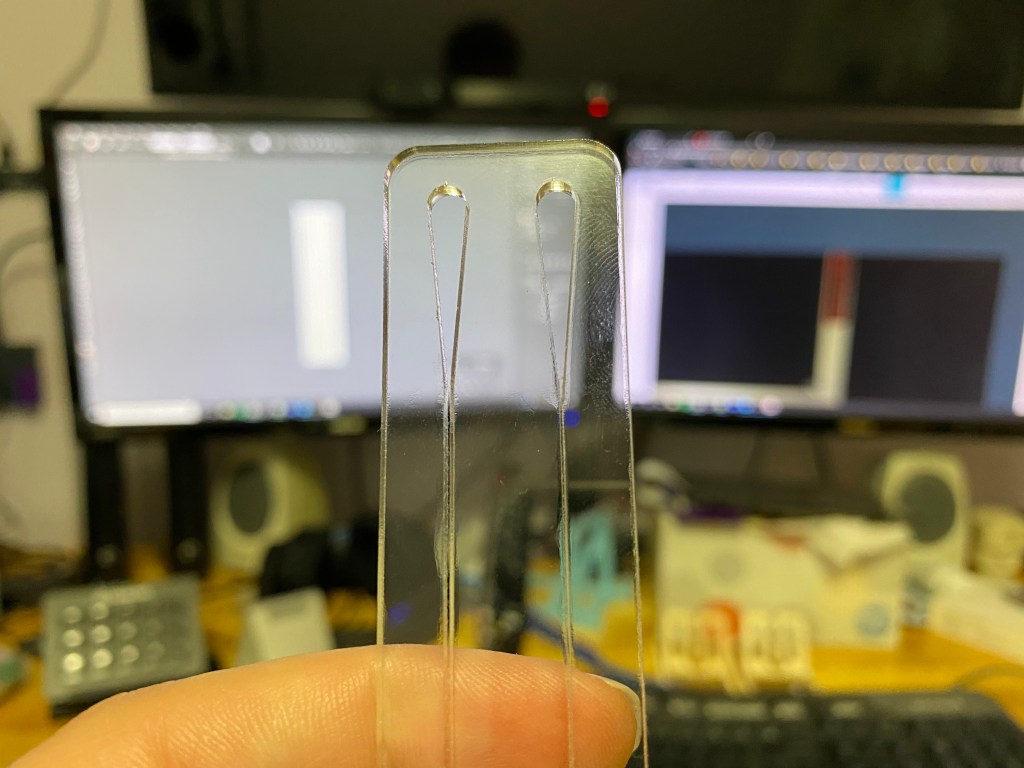 Designed in Fusion 360, Logo added in Adobe Illustrator, cut from 1/8in clear cast acrylic using a Glowforge Basic.