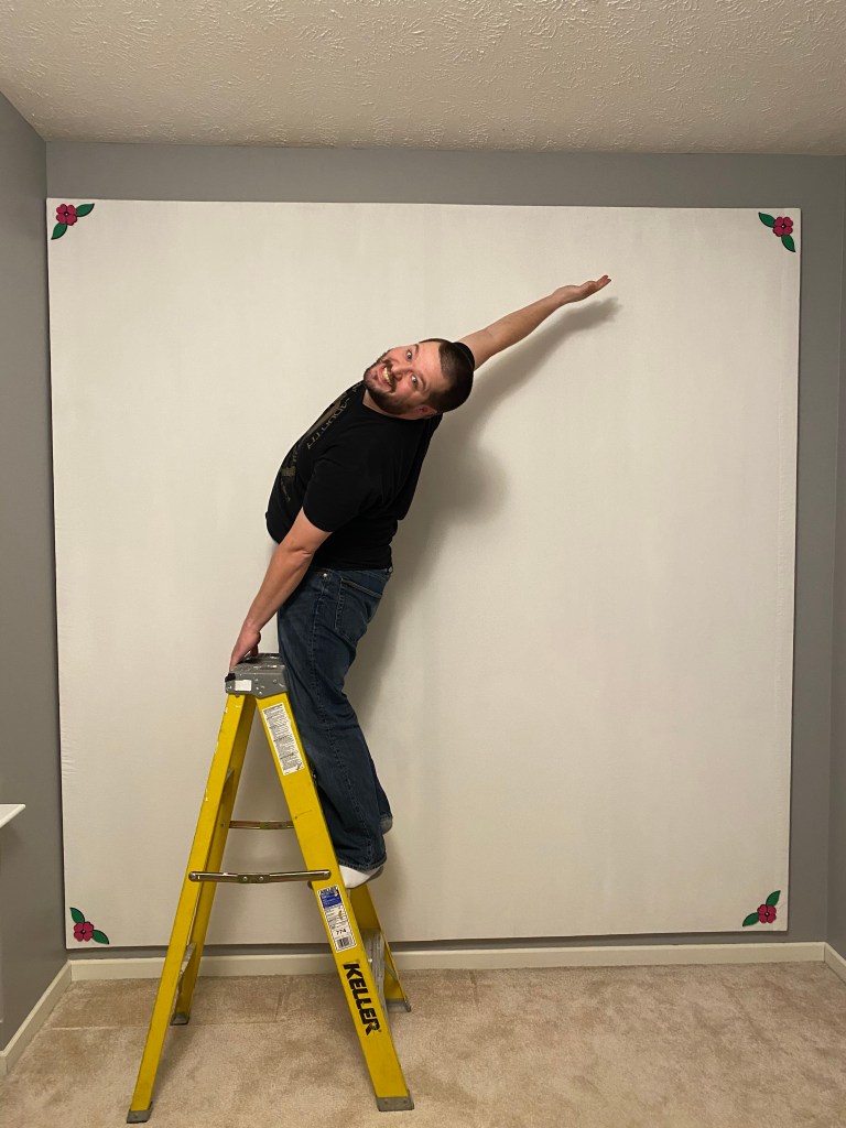 To keep the design wall from getting beaten up by the vacuum cleaner, it’s attached to the wall a few inches above the floor.