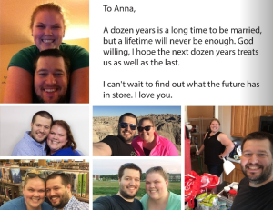 A dozen years is a long time to be married, but a lifetime will never be enough. God willing, I hope the next dozen years treats us as well as the last.